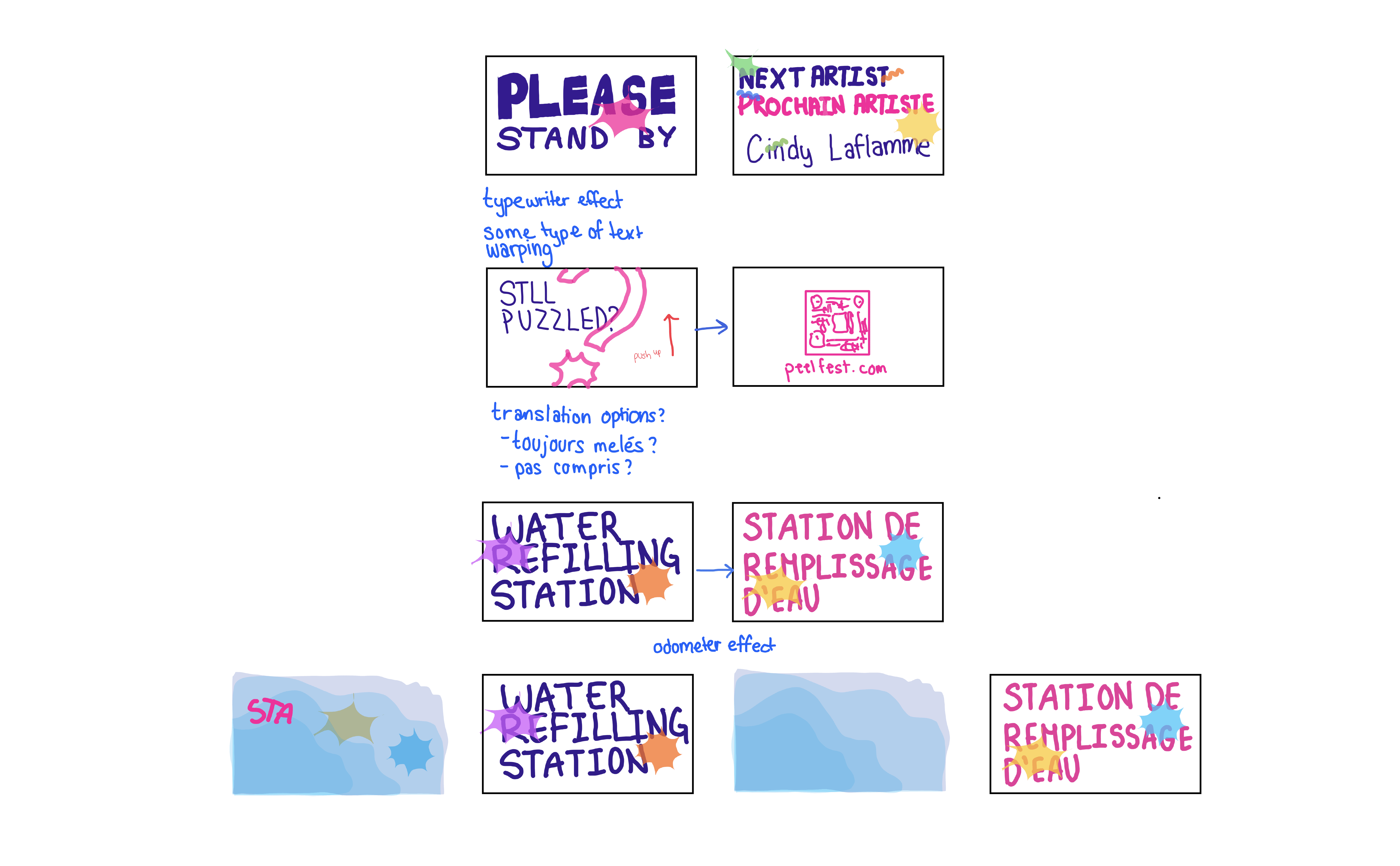 Blue and pink, a contrast representing the duality of the festival rather than the two peak times of the events (day, night). Although commonly associated with gender, I wanted to take a spin of the common attributes related to pink and blue and make them work together.